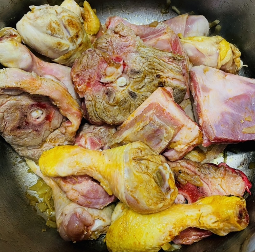 1. Saisir la viande dans de l’huile d’olive (1 a 2 cuillères à soupes) et rajouter les oignons.